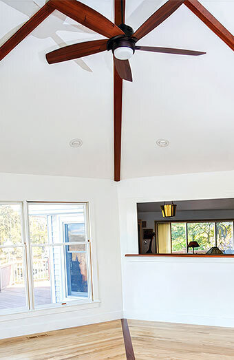Professional installation of new ceiling fans in bedrooms, living rooms, patios and offices with options for standard or modern low-profile designs at your preferred height.